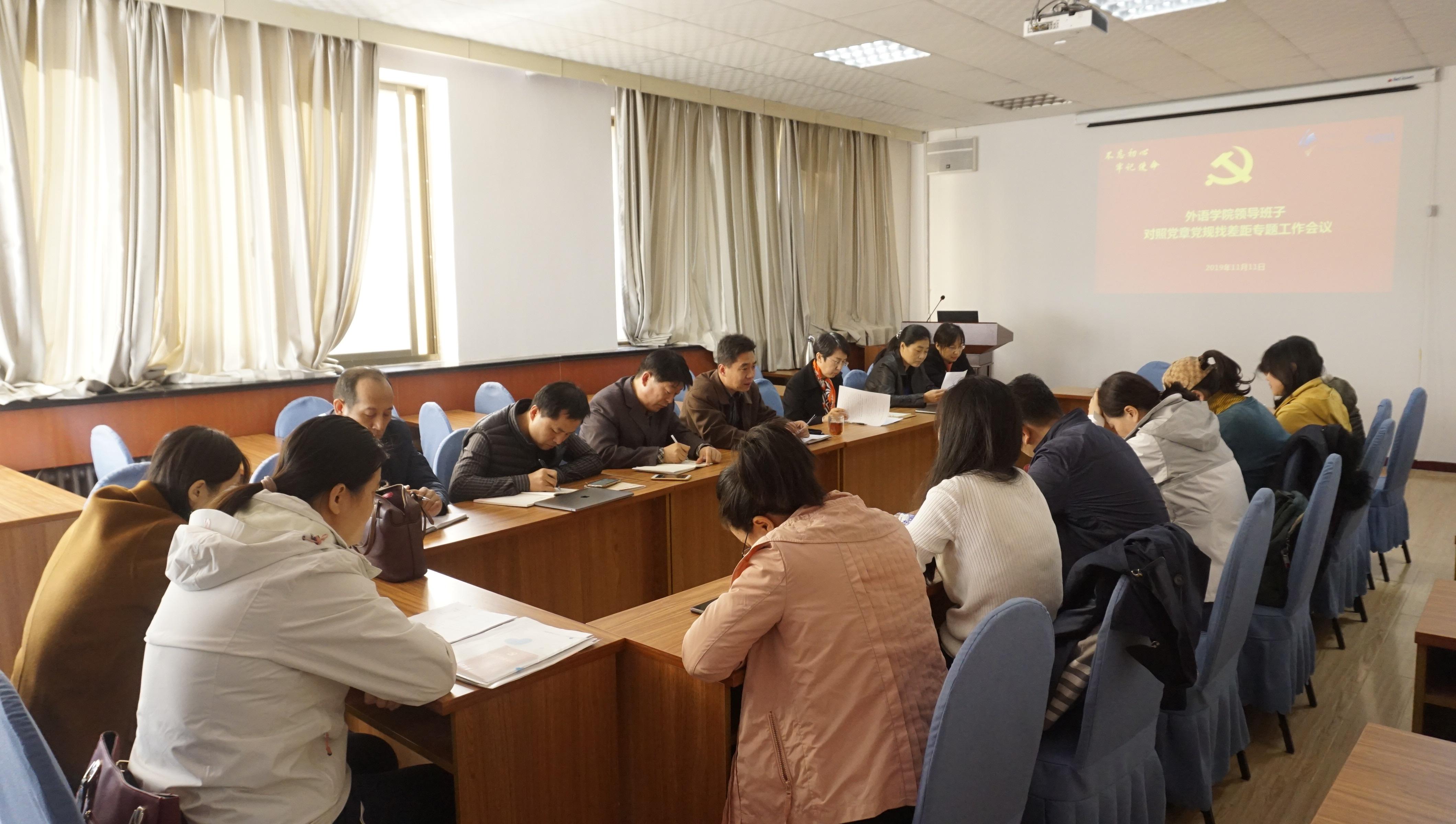 领导班子在博文楼312召开对照党章党规找差距专题会议,学院党委书记王传永主持会议,学院领导班子成员、党委委员、各支部书记、各系、办主任参加会议。