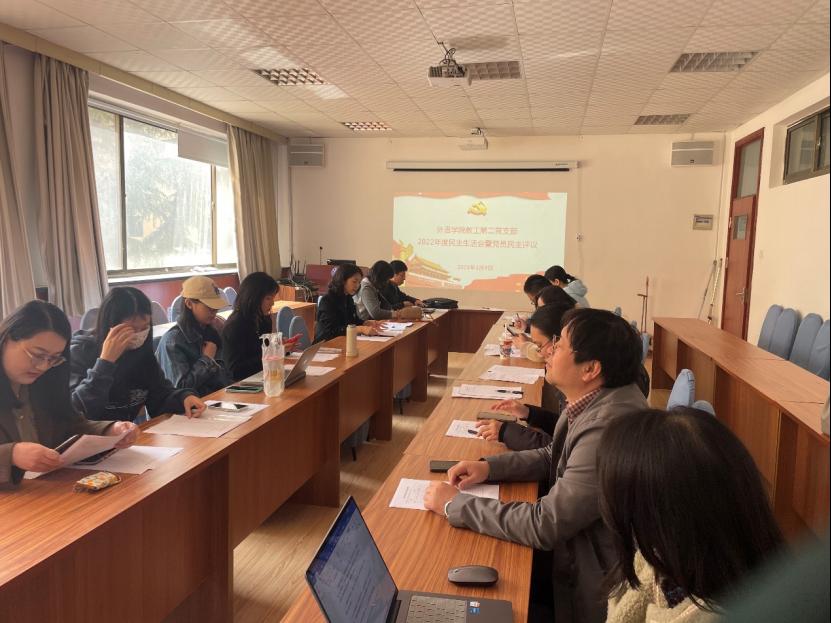 教工第二党支部在博文楼312会议室召开了2022年度组织生活会暨民主评议党员大会。会议由教工第二党支部书记崔花主持,全体党员参加会议。