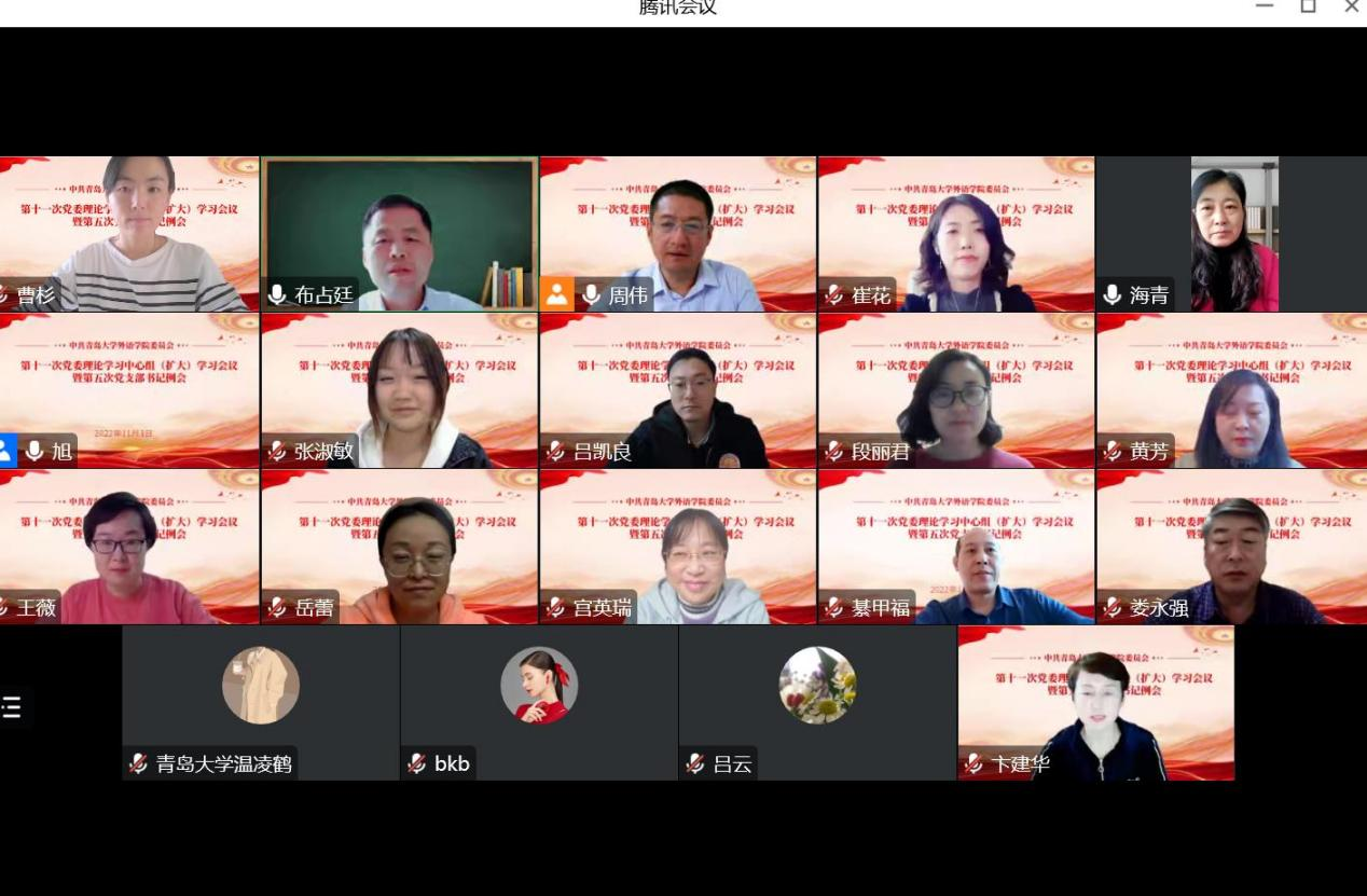 周伟在总结发言中提出,深入学习、广泛宣传、全面贯彻党的二十大精神,是学院当前和今后一个时期的首要政治任务;学习贯彻党的二十大精神,重在做到学以致用、知行合一,确保学有所获、落地见效;要求各党支部、各系办分别制定学习计划,组织全体师生员工认真学习,坚持学原文悟原理,注重示范引领,坚持骨干带头学,充分发挥领学促学作用,以“关键少数”带动“绝大多数”,迅速推动掀起学习热潮;要求全院上下深刻领悟“两个确立”的决定性意义,增强“四个意识”、坚定“四个自信”、做到“两个维护”,切实用党的二十大精神统一思想、凝聚精神、汇聚力量,加快推进学院学科建设、专业建设、人才培养、社会服务建设步伐,为全面建设社会主义现代化国家、全面推进中华民族伟大复兴做出青大贡献、外院贡献。