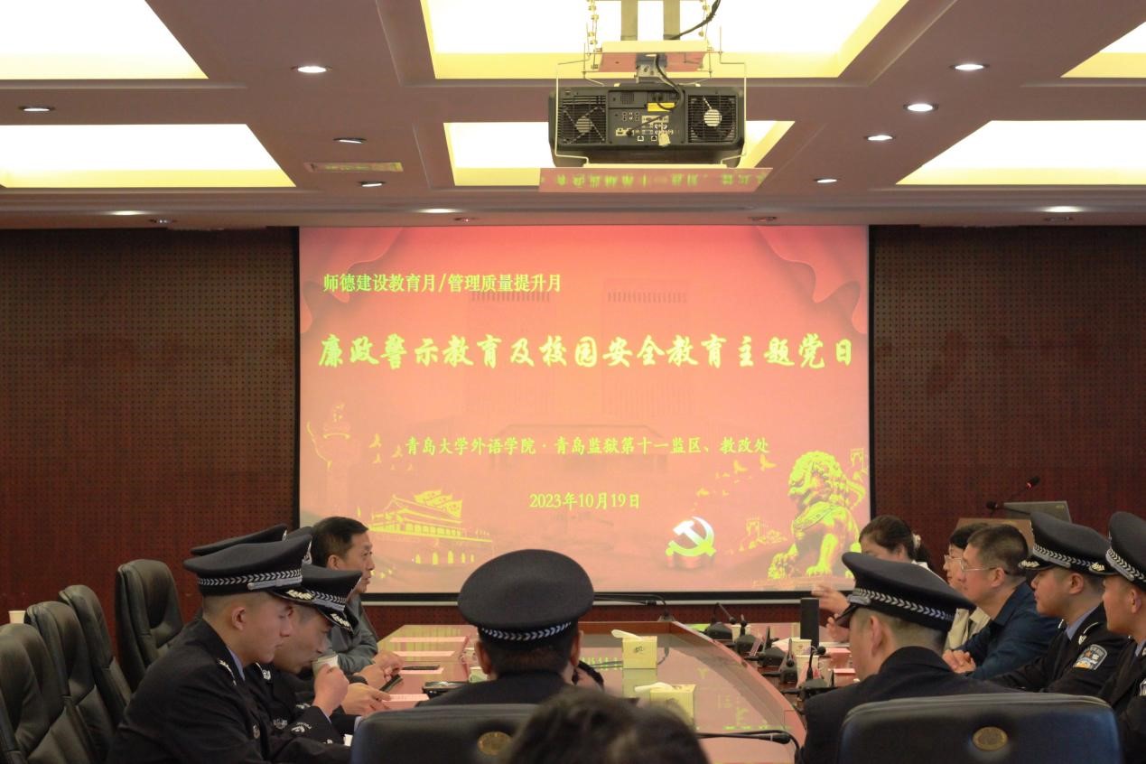 师德建设活动月及管理质量提升月,青岛监狱第十一监区、教育改造处讲师为所有参与活动人员进行廉政警示教育及校园防诈骗安全主题宣讲。