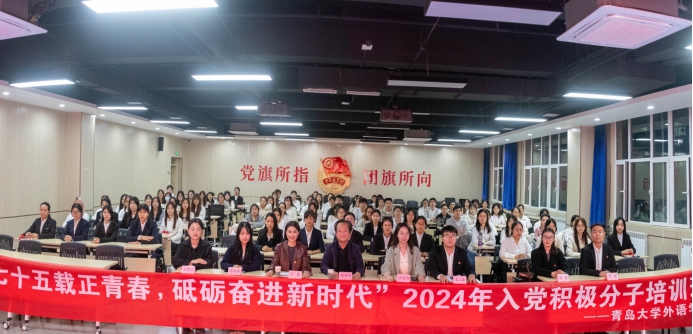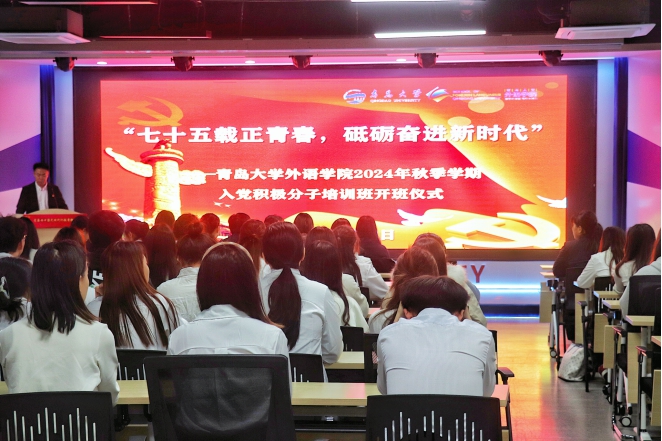 于2024年11月12日晚,在浮山校区大学生活动中心205会议室举行“七十五载正青春,砥砺奋进新时代”2024年秋季学期入党积极分子培训班开班仪式。院党委书记陈崇研、院党委副书记于苗、学生党支部书记及97名入党积极分子出席开班仪式,会议由培训班班主任、学生第四党支部书记刘浩主持。