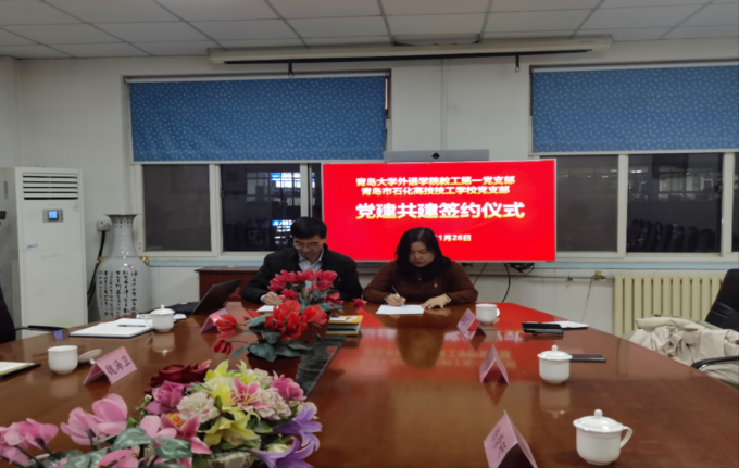 教工第一党支部与青岛市石化高级技工学校党支部举行共建签约仪式。黑料