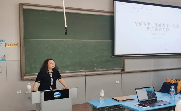 随后,袁教授与同学们进行更加深刻的探讨。通过玛丽斯·孔戴在三个不同时期的三部小说:《瑞汉达一季》《黑人女巫蒂图巴》和《新福音书》来揭示了加勒比地区法语书写中所独有的若干问题,从中分析同学们应当如何正确地处理女性问题。此外与同学们说道:“无论是打扮自己或是丰富自己,都不应以别人的要求为标准去满足别人的需求取悦别人,而是为了取悦自己。”与此同时,她还鼓励同学对法国文学、语言学以及翻译进行跨文化的深入学习探索,运用所学的法语语言去探索法国的文学作品,并推荐同学们去读一读玛丽斯·孔戴的作品。