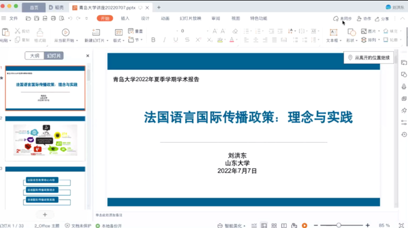 师生带来了题为“法国语言国际传播政策:理念与实践”的线上学术讲座。此次讲座属于本年度我校夏季学期高端学术报告和教师发展中心名师讲坛,也是黑料