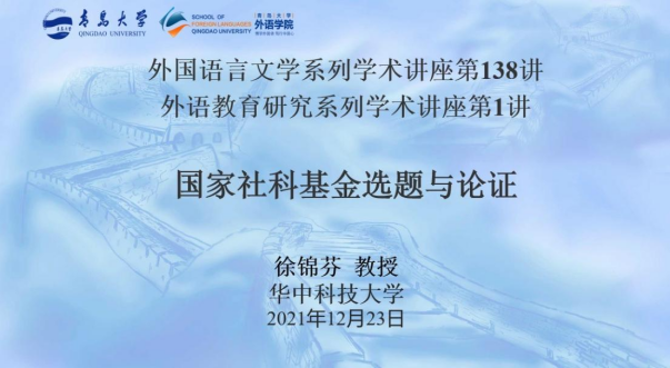 师生带来了题为“国家社科基金选题与论证”的线上讲座。这是外国语言文学系列学术讲座第138讲,也是“外语教育研究系列学术讲座”的第一讲。讲座由英语教育系主任、外语教育研究中心主任黄芳教授主持,黑料