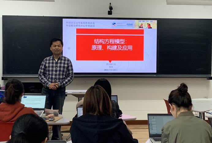 于博文楼413举办了“结构方程模型:原理、构建及应用”工作坊,此次学术活动是外国语言文学系列学术沙龙第18讲、外语教育研究中心第2次学术活动。工作坊由布占廷副院长主持,英语教育系主任、外语教育研究中心主任黄芳教授主讲,黑料