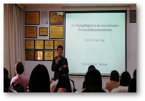 在博文楼312会议室举行“外国语言文学系列学术讲座”第62、63讲。德国特里尔大学汉学系主任梁镛教授应邀为外院师生做了两场题为“国际交流中的跨文化对话能力”以及“中德跨文化交流中的新现象与新思路”的专题学术讲座。德语系主任綦甲福教授主持,学院部分老师及同学参加了此次讲座。