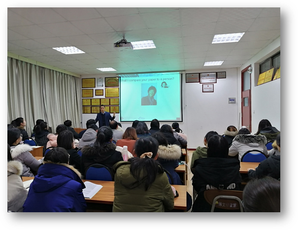 冯教授以一篇关于“香港地区英语教材中的社会价值”的论文为例,讲授如何进行学术研究与学术论文写作。从开始发现问题、提出问题到引言部分的撰写;从选取数据、设计理论框架到分析数据、展示数据;从对研究结果进行讨论、解释到最后提出研究价值与其实际应用,冯教授不仅对其个人研究成果进行了详细展示,而且以此总结概括了学术研究、学术论文写作中应该遵循的思路以及应该注意的问题。讲座最后,冯教授以教学研究为例总结学术研究的四个关键环节:联系实际、发现问题;构建理论框架;分析、解释;实际应用。冯教授本人见解独到、风趣幽默,讲授内容深入浅出、分析透彻,在座师生获益良多。(科研办)