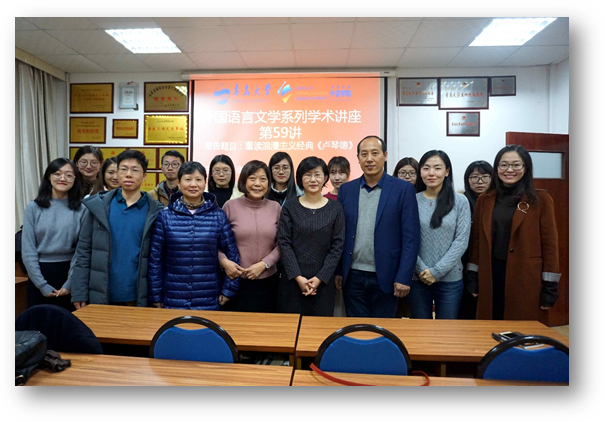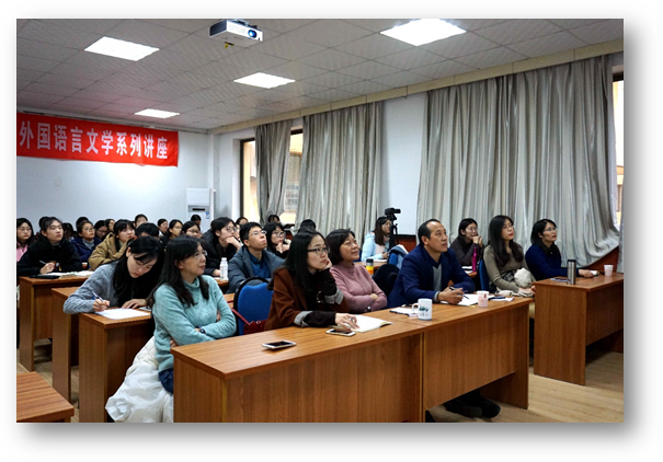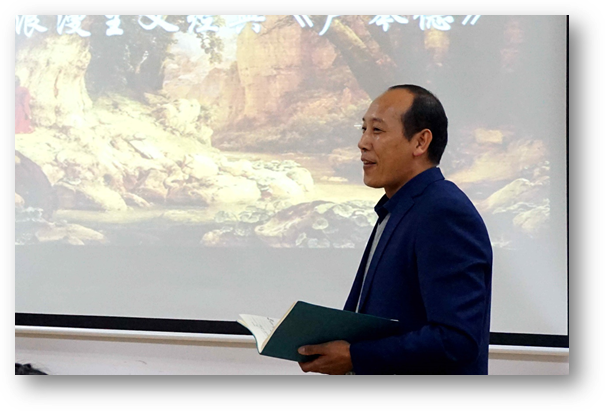 于博文楼312会议室举行“外国语言文学系列学术讲座”第59讲。上海外国语大学德语系教授、博士生导师张帆应邀回母校为外院师生做题为“重读浪漫主义经典《卢琴德》”的学术讲座。讲座由德语系系主任綦甲福教授主持,60余名师生聆听了讲座。