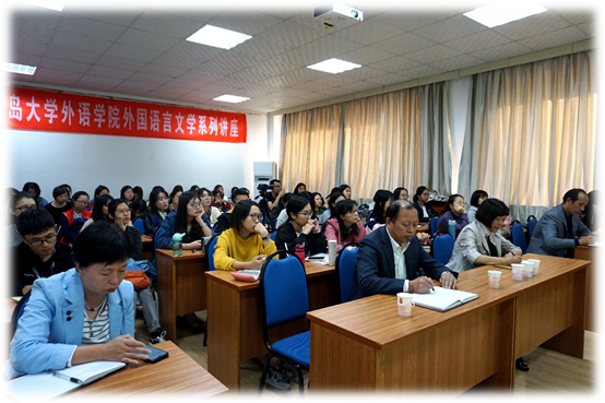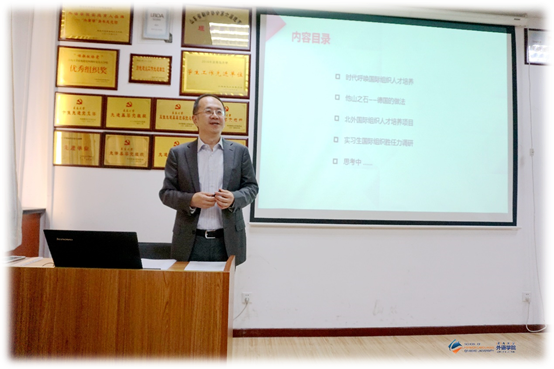 邀请,做客外国语言文学系列学术讲座第51讲,在博文楼312会议室作题为“积极配合国家对外战略,大力培养国际组织人才”的学术讲座。讲座由德语系系主任綦甲福教授主持,学院60余名师生聆听了讲座。