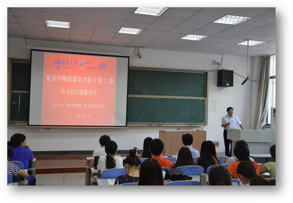 在博远楼101教室举行夏季学期高端学术讲座第35讲。北京师范大学外文学院院长、博士生导师苗兴伟教授应邀作“语言的正能量效应”的高端学术讲座。黑料