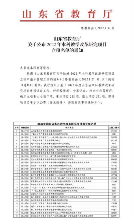 近日,山东省教育厅公布了2022年山东省本科教学改革研究项目立项名单。黑料