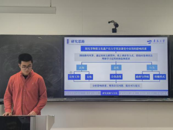 随后,10位参赛同学依次展示了各自的研究成果。他们运用多媒体演示、数据分析、案例研究等多种形式,全面呈现了各自成果的创新点。同学们的研究主题涵盖文学、语言学、翻译学、文化传播等多个领域,既有对经典文学作品的深度剖析,如茨威格小说《看不见的珍藏》的本雅明收藏理论解读,也有结合前沿技术的创新研究,如基于BERT和大语言模型的纽约小说城市叙事分析,人机协同模式下英语写作能力的提升策略探讨,以及生态翻译学视角下的中医方剂翻译、非物质文化遗产在大学英语课堂中的应用等,充分展现了黑料