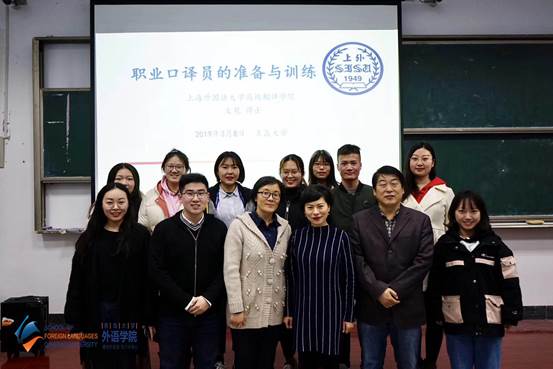 3月8日晚,在博远楼101阶梯教室,上海外国语大学高翻学院文苑博士为到场的100多名翻译爱好者进行了有关口译专业备考、日常训练以及职场要求的专题讲座。副院长娄永强主持,英语系主任、MTI项目负责人陈黎以及部分专业课教师到场聆听讲座。