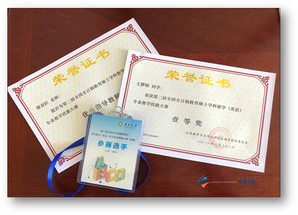 2017级学科教学(英语)专业硕士研究生王梦姣同学获得一等奖,指导老师廖春红教授获得优秀指导教师称号。这是外院学子在该项目比赛中连续两届获得一等奖。