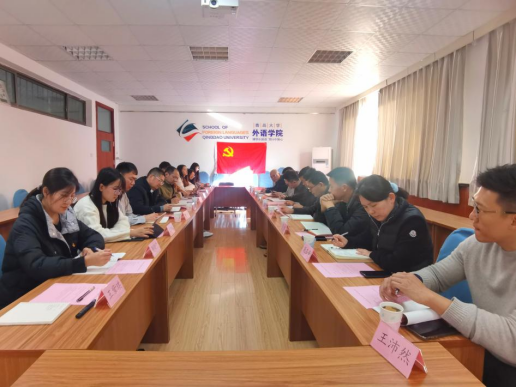 校党委常委、宣传部部长吴世珍为两个党支部的20余名党员解读了2023年全国宣传思想文化工作会议精神。吴世珍讲解了全国宣传思想文化工作会议精神和习近平文化思想提出的重大意义,结合高校外语人才的培养,要求党员要积极主动担当作为,坚定文化自信,担当弘扬优秀传统文化的使命,深入学习贯彻习近平文化思想,推动中华优秀传统文化创造性转化、创新性发展。
