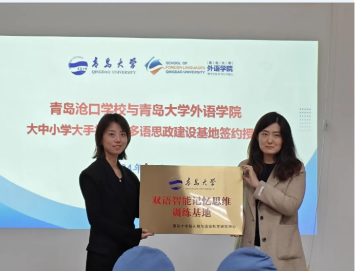 脑认知与语言科学研究中心王曼与青岛沧口学校教导主任王妮为记忆思维训练基地揭牌