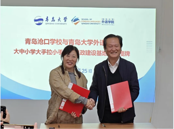 党委书记陈崇研与青岛沧口学校校长李雅慧签署合作协议