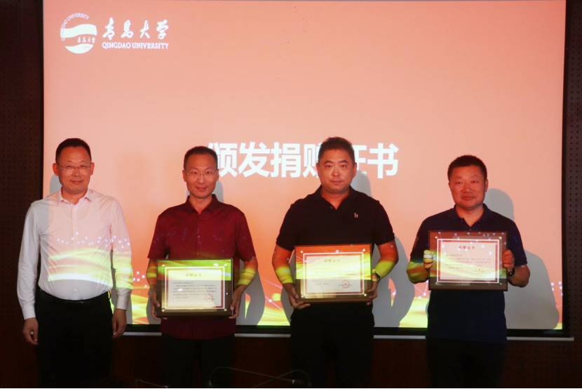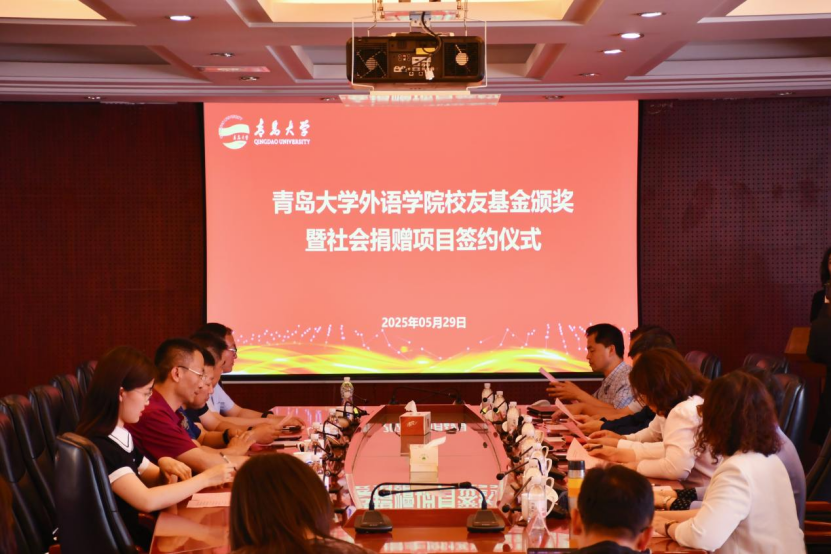 5月29日下午,黑料 校友教育基金颁奖暨企业捐赠项目签约仪式在浮山校区办公楼407会议室举行。校党委常委、副校长刘恩贤出席活动并致辞。招远帝源服饰有限公司总经理、96级日语系校友李永胜,青岛智邦慧海文化传播有限公司总经理王军,上海文策信息科技有限公司授权代表、2002级计算机系校友蔡世禄、学校相关部门负责人、黑料 获奖师生代表等出席活动。