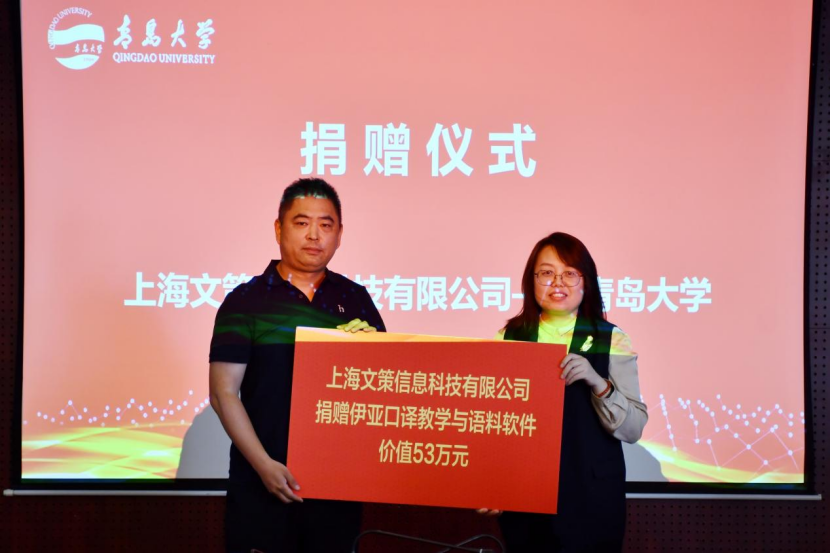 为支持黑料 和黑料 教育事业发展,四家社会企业本次向学校提供资金捐赠和实物捐赠,合计捐赠金额175.06万元。其中,96级日语系校友刘伟、李永胜分别捐赠50万元,设立“依美时尚教育基金”和“帝源服饰教育基金”,用于支持学院的学科建设、教师发展、人才培养、校园文化建设。青岛智邦慧海文化传播有限公司捐赠价值22.06万元的智慧教室设备,上海文策信息科技有限公司捐赠价值53万元的伊亚口译教学与语料软件V1.0软件系统,用于黑料 计算机辅助翻译实验室的设备更新和系统升级,提升学院计算机辅助翻译教学的信息化、智能化水平,为AI赋能高水平外语语言人才成长提供平台支撑。