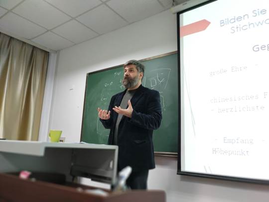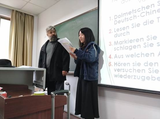,为德语专业同学进行了为期两天、共八课时的口译授课。德语系本科三、四年级及硕士研究生共50余名同学参加了学习。