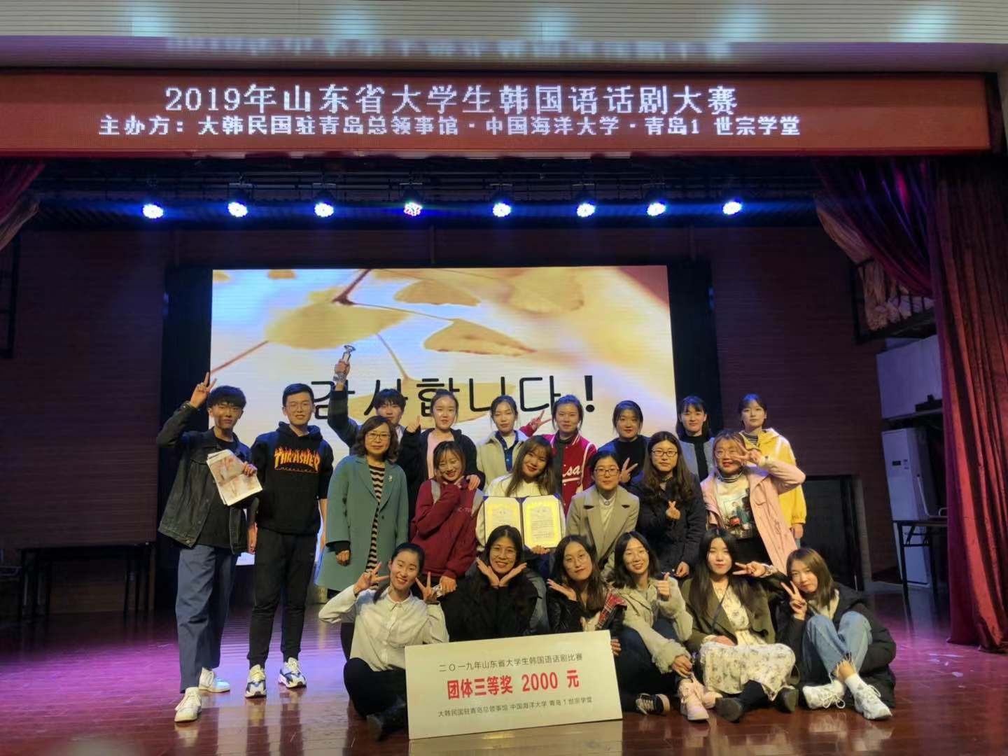与山东科技大学荣获三等奖。此次大赛为山东各高校韩国语系大学生提供了一个展现自我风采的舞台,也为各高校韩语爱好者带来了一场视觉与听觉的盛宴。