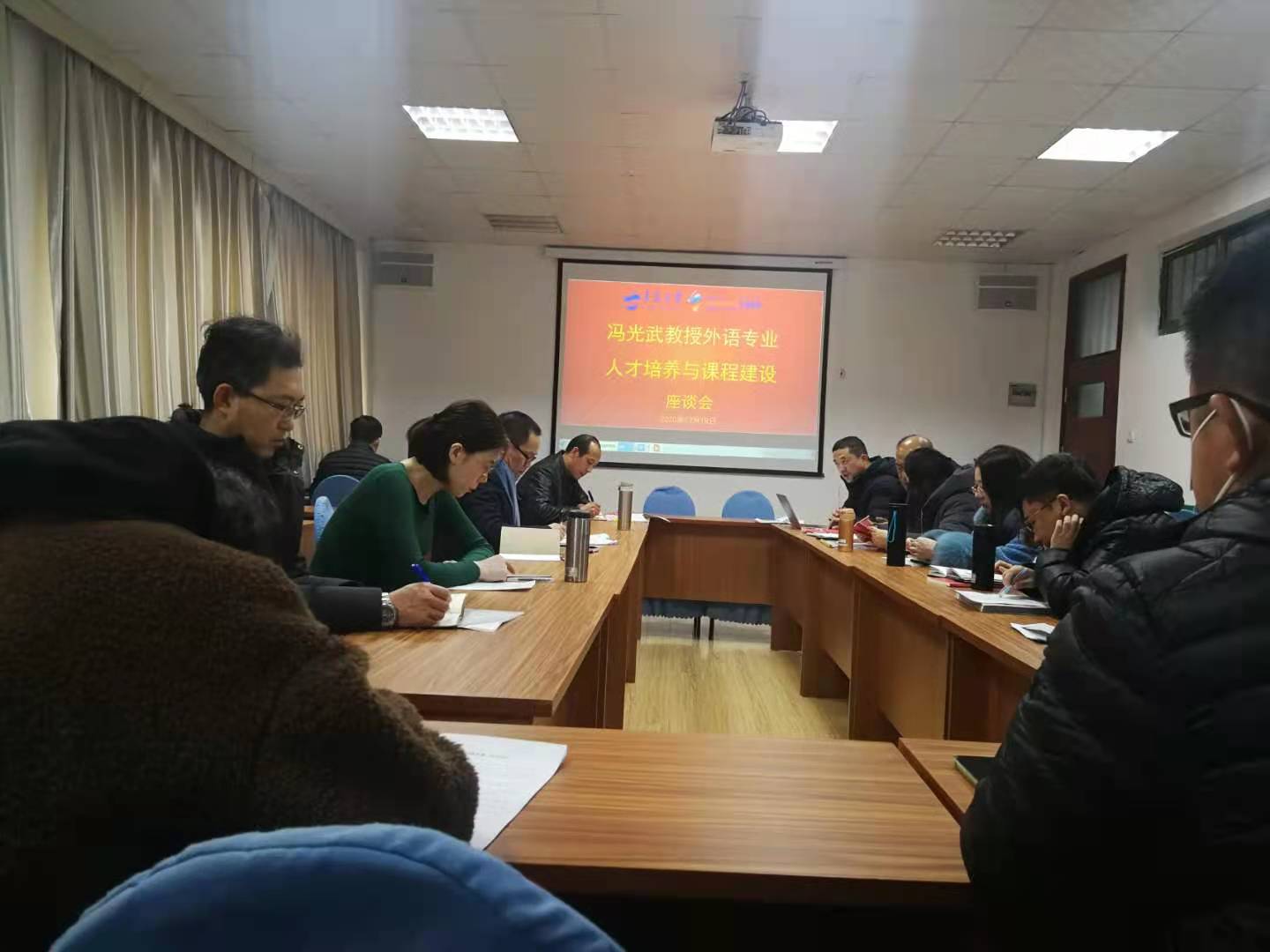 在博文楼312会议室召开学院专业人才培养与课程建设座谈会,邀请教育部高等学校外国语言文学类专业教学指导委员会英语专业教学指导分委员会委员、广东外语外贸大学冯光武教授为黑料