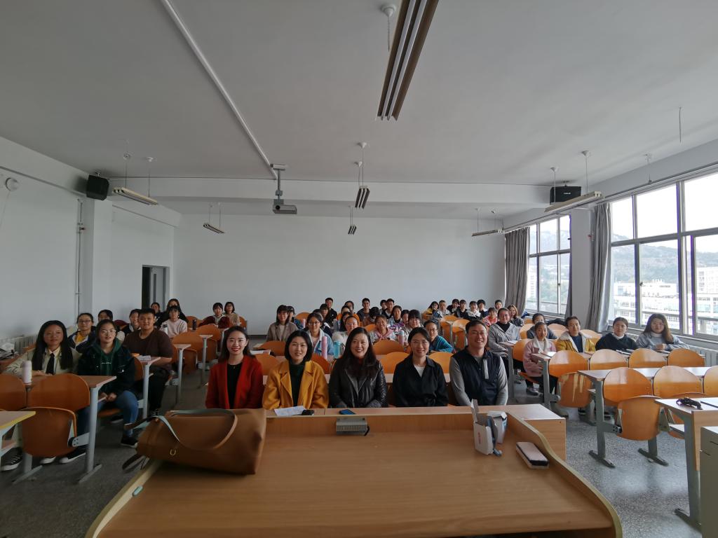 贾嘉老师分享了16级毕业生的经历和经验,强调不论英语教育专业面对什么样的形势,我们都应该认真学习,避免在转折来临时的局促不安。贾嘉老师说,现在的我们距实现梦想很近,珍惜每一次机会,不让自己后悔。温凌鹤老师提醒我们学好英语非一蹴而就,更需要稳扎稳打,步步踏实。温老师建议同学们平时多阅读英文书籍,闲暇时通过多种方式培养自己对英语的兴趣。温老师鼓励学生多参与专业比赛及活动,积累经验。要求同学们学会自律,以昂扬向上的姿态面对自己的大学生活。