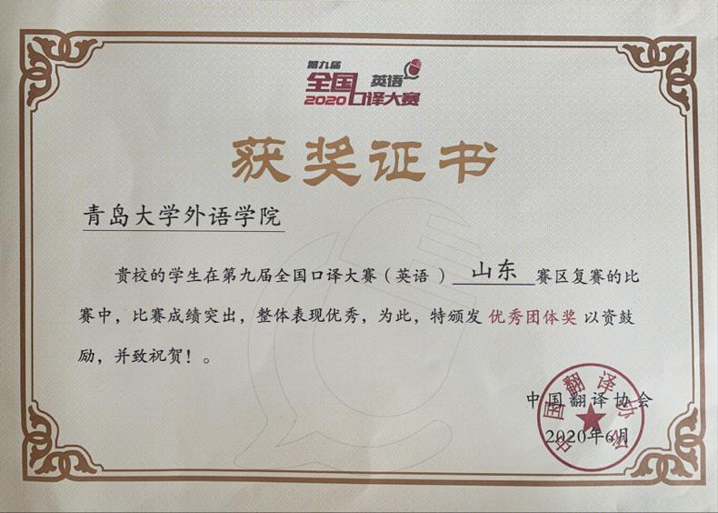 2020年第九届全国口译大赛(英语)山东赛区复赛于7月8日公布最终结果。黑料