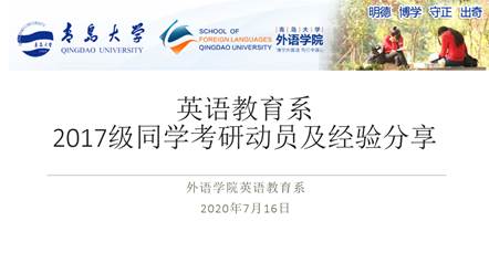 英语教育系通过腾讯会议平台举办了考研动员与经验分享交流会,会议由英语教育系主任黄芳、副主任王进福主持,黑料