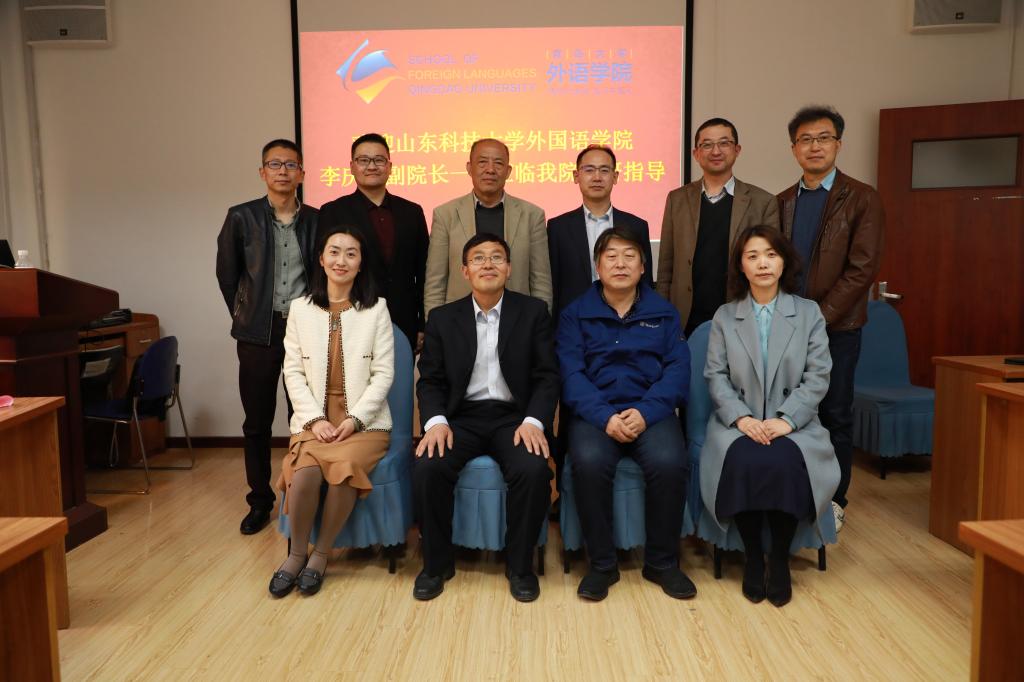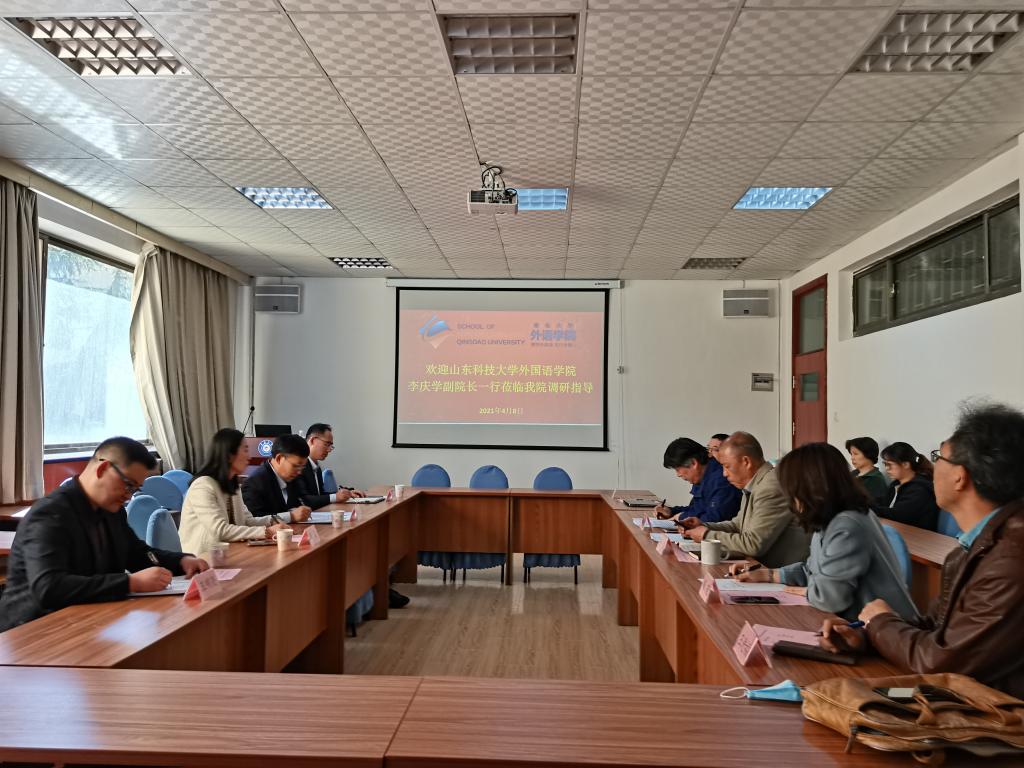 2021年4月8日下午,山东科技大学外国语学院副院长李庆学、英语系主任王明亮、日语系主任陈昌柏和朝鲜语系主任刘霞一行莅临黑料