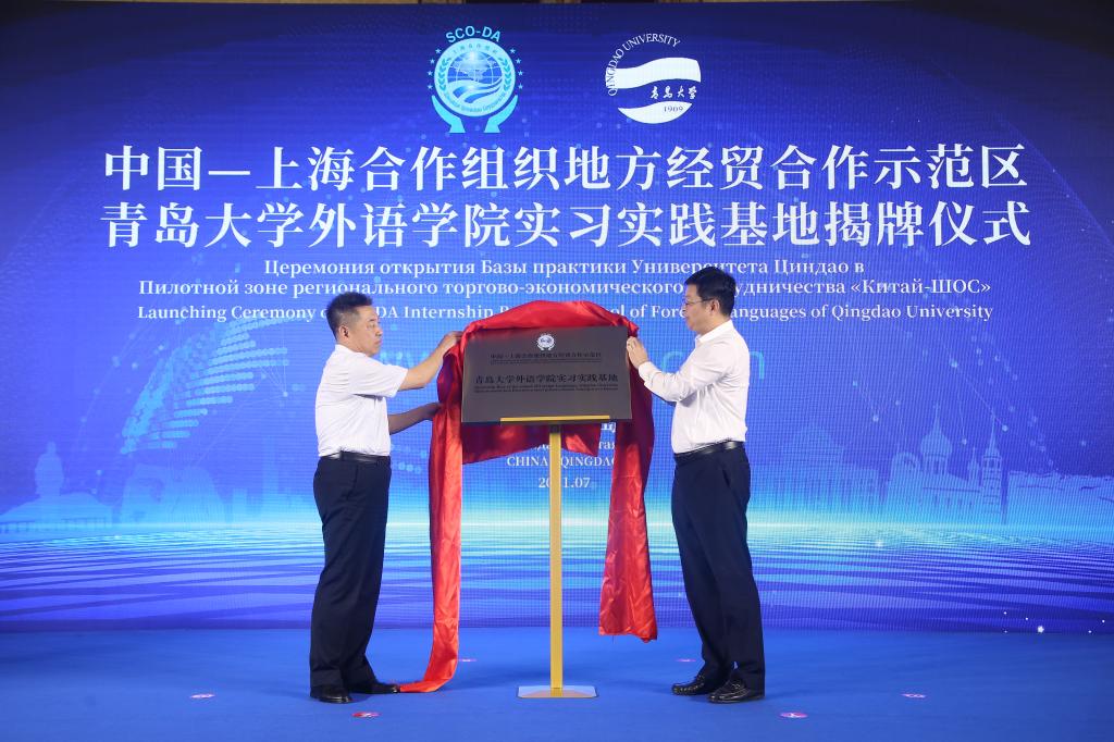 实习实践基地揭牌仪式在胶州喜来登大酒店隆重举行。校党委副书记杜方波、上合示范区党工委委员、管委会副主任孟庆胜、黑料