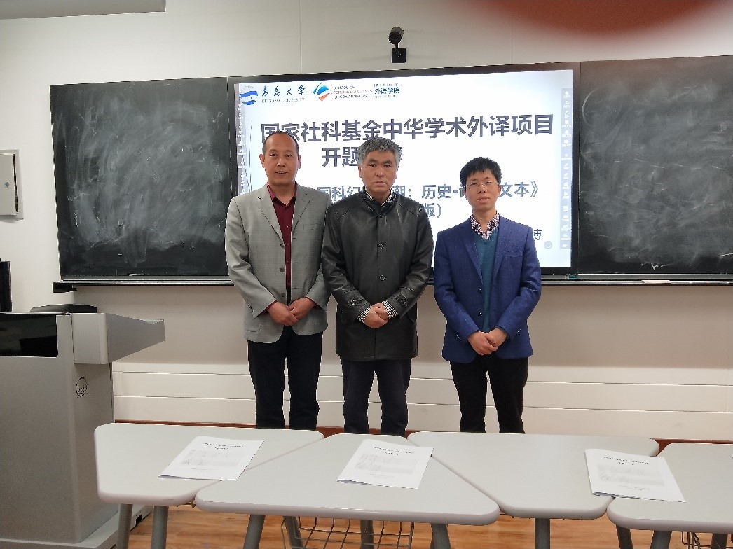 开题答辩会共分三个部分,首先项目负责人王学博老师就中华学术外译项目《中国科幻新浪潮》做开题报告,他简单介绍了项目的申报过程,然后就项目的翻译、审校、出版、宣传等各个环节进行陈述。随后,答辩委员会成员针对《开题报告书》所列各项方案,尤其就翻译质量提升和后期宣传推广等问题进行提问并予以指导。