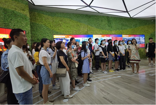 7月20日,德语系组织学生赴青岛西海岸新区中德生态园和青岛市档案馆进行调研、参观及思政教育活动。德语系主任綦甲福、副主任刘沁卉带队,德语系教师陈骏飞、王学博以及德语系本科生和研究生近70人参加此次调研教育活动。