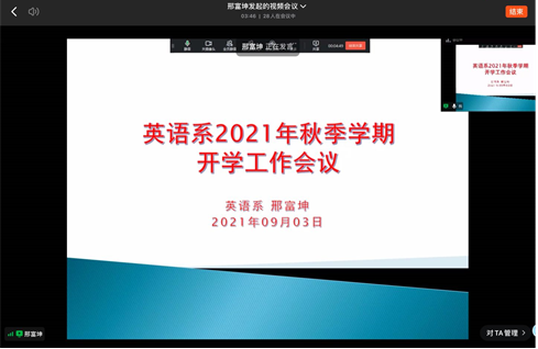 英语系召开2021年秋季学期开学工作会议,总结全系上学期工作,布置新学期教学任务,会议由邢富坤主任主持,全系教师参加。