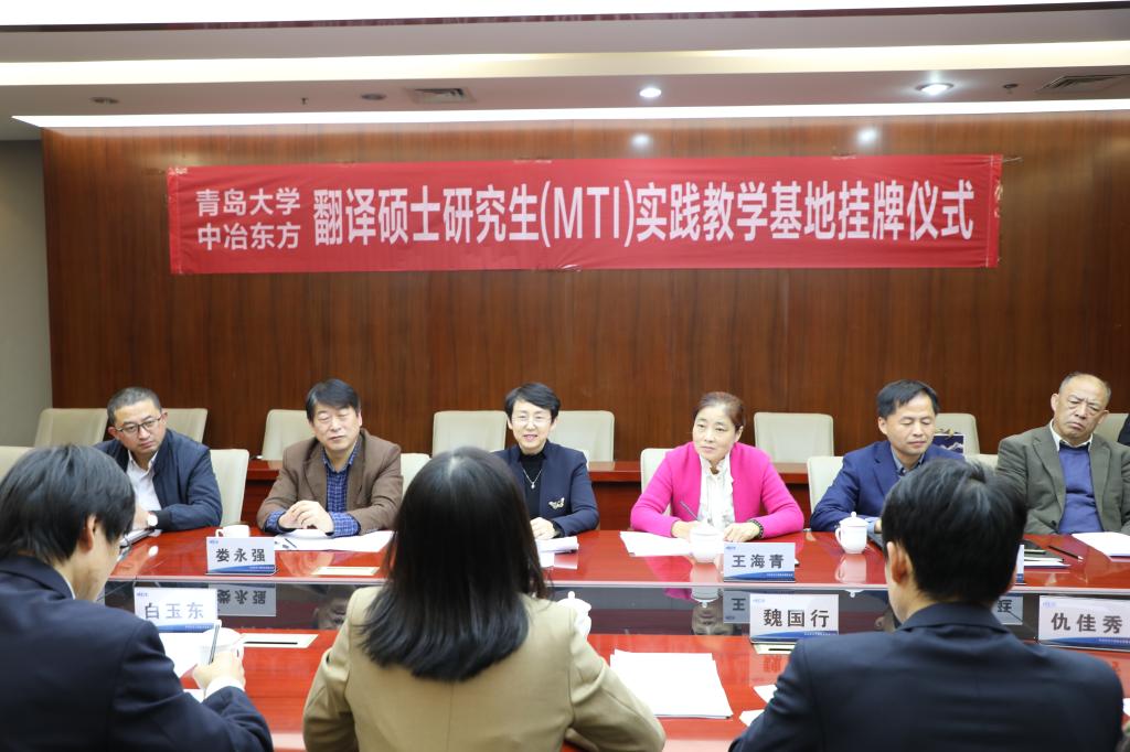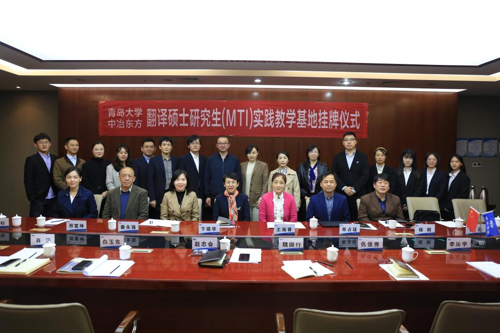 与中冶东方工程技术有限公司(以下简称中冶东方公司)翻译中心MTI实践教学基地揭牌仪式在西海岸新区中冶东方大厦举行。院长卞建华、党委副书记王海青、副院长布占廷、娄永强、院长助理曹杉和各教学系代表参加了仪式。仪式由中冶东方公司翻译中心主任、黑料