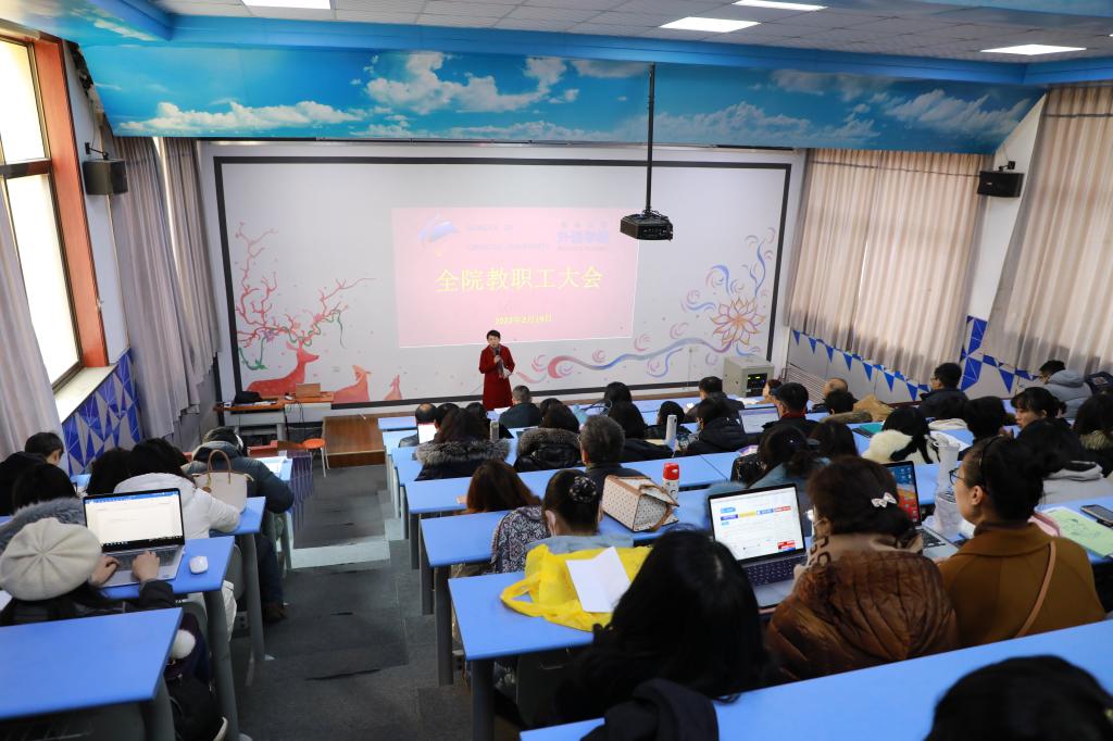 院长卞建华传达了学校春季学期中层干部学习研讨班精神,并对学院寒假所做的重点工作进行了通报。她对照学校下达的目标任务详细总结分析了2021年度学院在人才培养、队伍建设、教学科研等工作完成的情况。她强调指出,学院多次召开交流会议,目的是总结经验教训、找出短板、强化贯彻落实政策文件。新学期,黑料