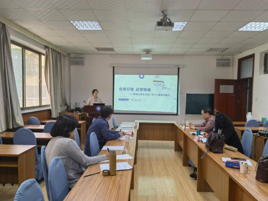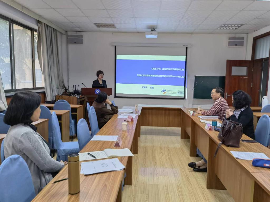 教师展示了课程思政教学与研究取得的优秀成果。学院共有五位老师参加了此次答辩会,德语系的曹杉、王学博,法语系的马一凡、段丽君,英语系的王薇老师,分别就德语笔译2、实用法语、二外法语3、美国文学等课程思政教学与研究成果进行了展示。老师们的教学方式新颖,形式多样,所获成果颇多,获得了五位评委专家的一致好评和肯定。评委老师提出了宝贵建议。