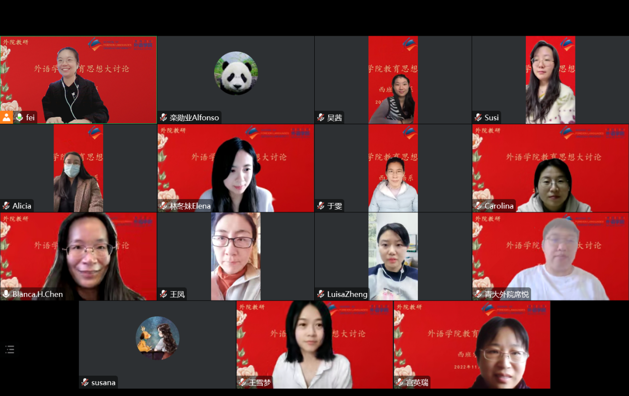 王海青副书记参加日语系教育思想讨论会。日语系主任杨剑、参加副主任杜雪丽、学科负责人张科蕾、第一教研室主任冯静、第二教研室主任郝靓、日语系全体教师以线上线下相结合的形式参加讨论。在认真研读黑料