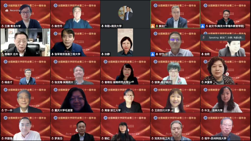 2022年11月6日,全国美国文学研究会第二十一届年会隆重举行。本届年会由全国美国文学研究会主办,四川大学外国语学院承办。会议聚焦美国文学与文化的跨界研究,包含7位专家的主旨发言、17个分会场研讨和20个研究生论坛。大会受到广泛关注,大会直播间观看人数达8700人次,腾讯会议出席人数满300人上限。来自全国24个省市的131所高校、研究所、出版社的354名专家、学者和研究生围绕大会主题展开学术研讨、共享学术盛宴。在本届年会期间,学会进行了理事会增改选工作,黑料
