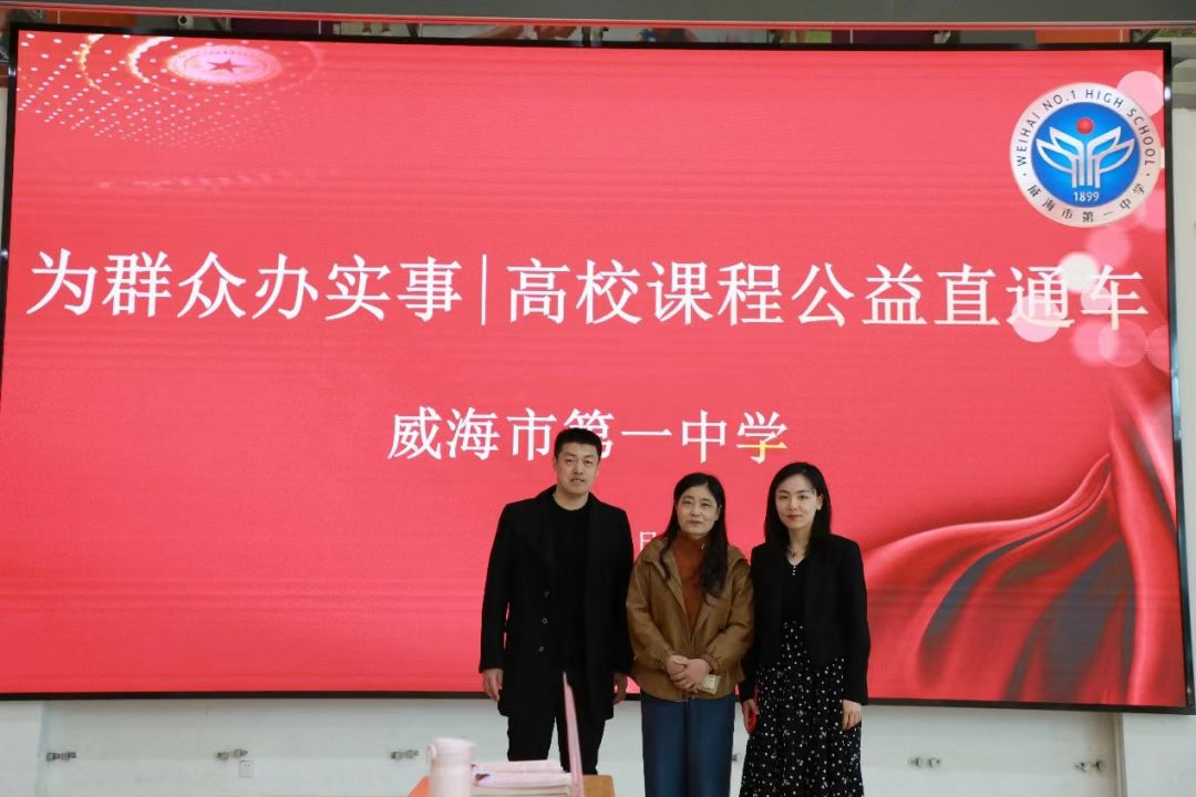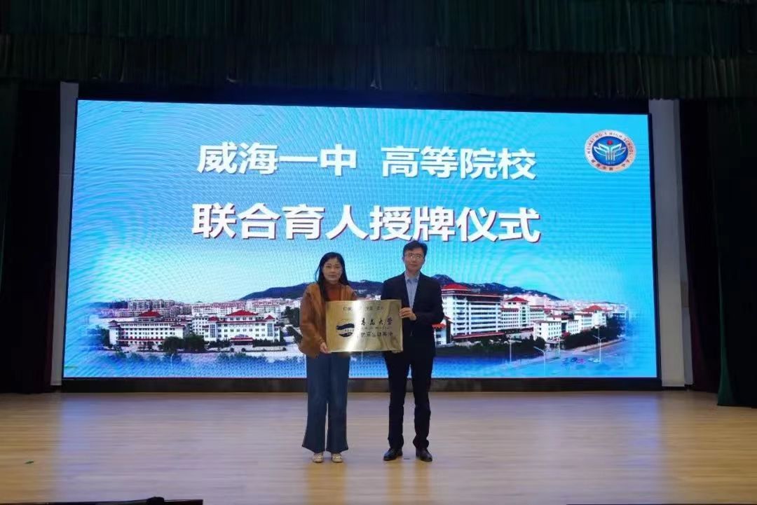 招生办公室马伯文老师于3月31日至4月1日跟随新浪山东主办的2023年度“招办进校园”高校课程公益直通车,先后赴威海一中、威海二中、威海市实验高级中学开展高考招生咨询工作,并分别与三所高中校方领导进行座谈,同时举行了“优质生源基地”签约、授牌仪式。