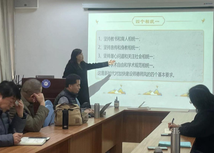 黄芳主任首先带领全系教师共同学习了习近平总书记“三个牢固树立”、“四有”好老师、“四个引路人”、“四个相统一”、“六要”等关于师德师风的重要指示批示精神,强调新学期全体教师要提高政治站位,认真做好各项工作,凝心聚力,勇于奉献。