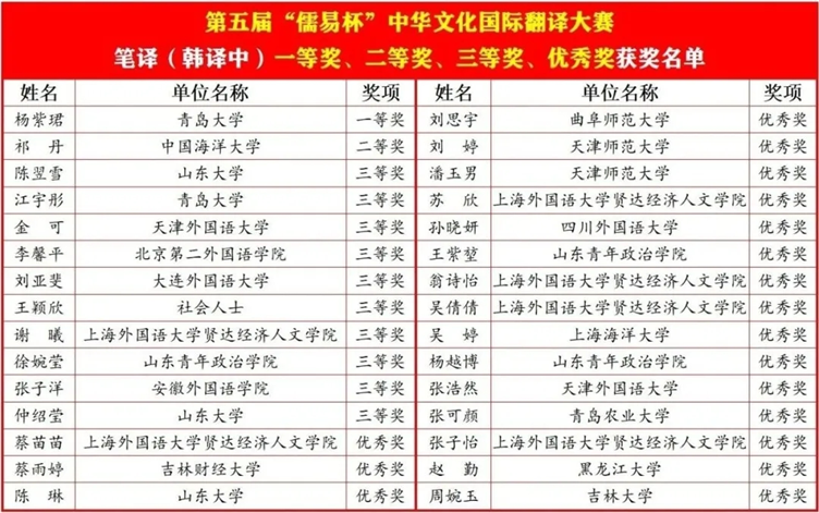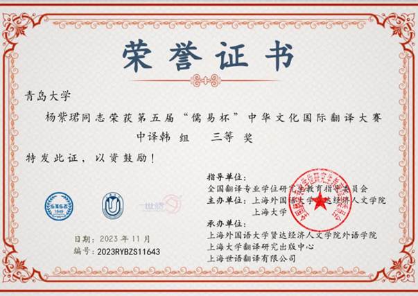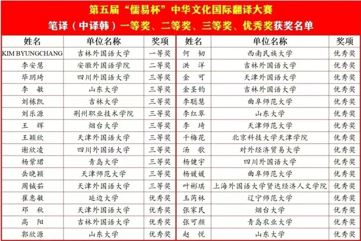 11月20日,全球230+家校企单位共同举办的第五届“儒易杯”中华文化国际翻译大赛揭晓获奖名单,此次大赛有来自全球102家院校及企事业单位,共计4351人次报名参赛。
