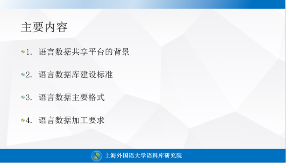 为期三天的课程分别由上海外国语大学语料库研究院李晓倩博士、四川师范大学张静副教授、上海语之能数据科技有限公司肖骁工程师等专家进行教授,涵盖“语言数据库导引”、“语料库的设计”、“语料库的建设”、“语言数据建设实操”、“语言数据共享平台的应用”等主题。本次研习课程对语言数据的建设与应用相关的问题进行了系统深入的探究,对高校青年教师的教学及科研工作具有重要的指导作用。