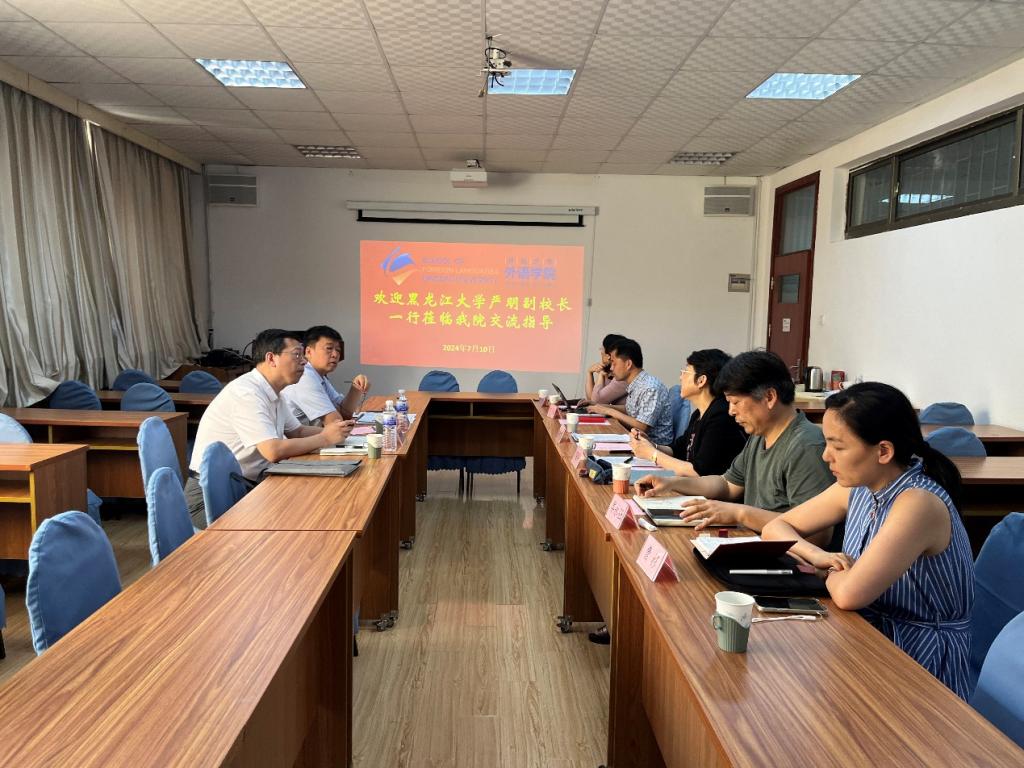 陈崇研代表学院对黑龙江大学一行的到来表示热烈欢迎。卞建华院长向黑龙江大学介绍了学院近年的发展情况,并重点介绍了黑料