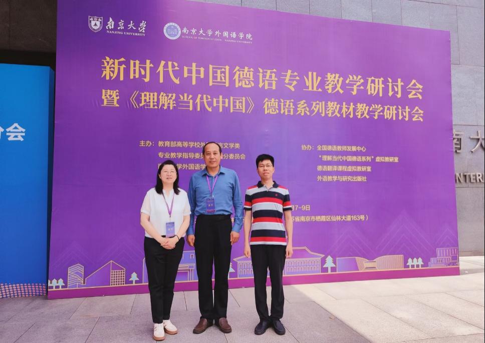 6月7日至9日,新时代中国德语专业教学研讨会暨《理解当代中国》德语系列教材教学研讨会在南京大学召开,来自全国数十所高校和学术机构的近70位专家和学者参会。作为“理解当代中国”德语系列教材编写团队的主编及编者,德语系綦甲福、刘惠宇和王学博等老师受邀赴南京大学参会。
