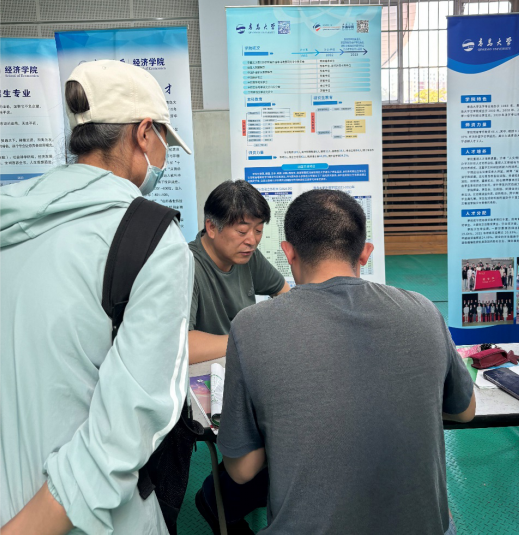 招生宣传专员娄永强、曹杉、王薇、王乐、秦硕谦、王进福、吕凯良、冯静、王墨、刘振中分别在青岛、威海、菏泽、济宁、泰安、莱芜、枣庄、郑州等地进行2024年高考招生咨询工作。宣传专员不顾高温天气,耐心细致地向考生和家长介绍了学校概况、专业优势、毕业去向等信息,重点就考生关心的招生政策、专业选择、历年录取情况进行了现场答疑。