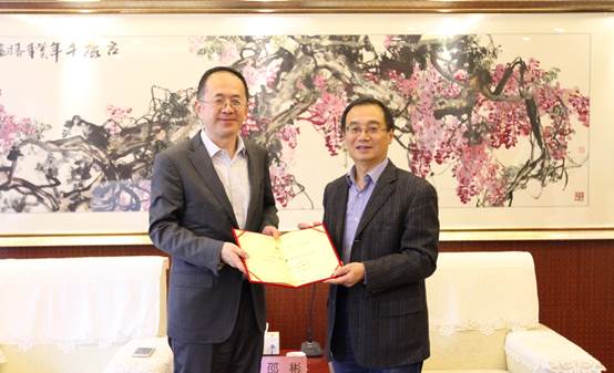 10月12日上午,学校在办公楼接待室举行仪式,聘任教育部高等学校外语专业教学指导委员会副主任委员、北京外国语大学副校长贾文键教授为我校客座教授。副校长邵彬出席仪式并代表学校向贾文键颁发聘书。人力资源处、黑料