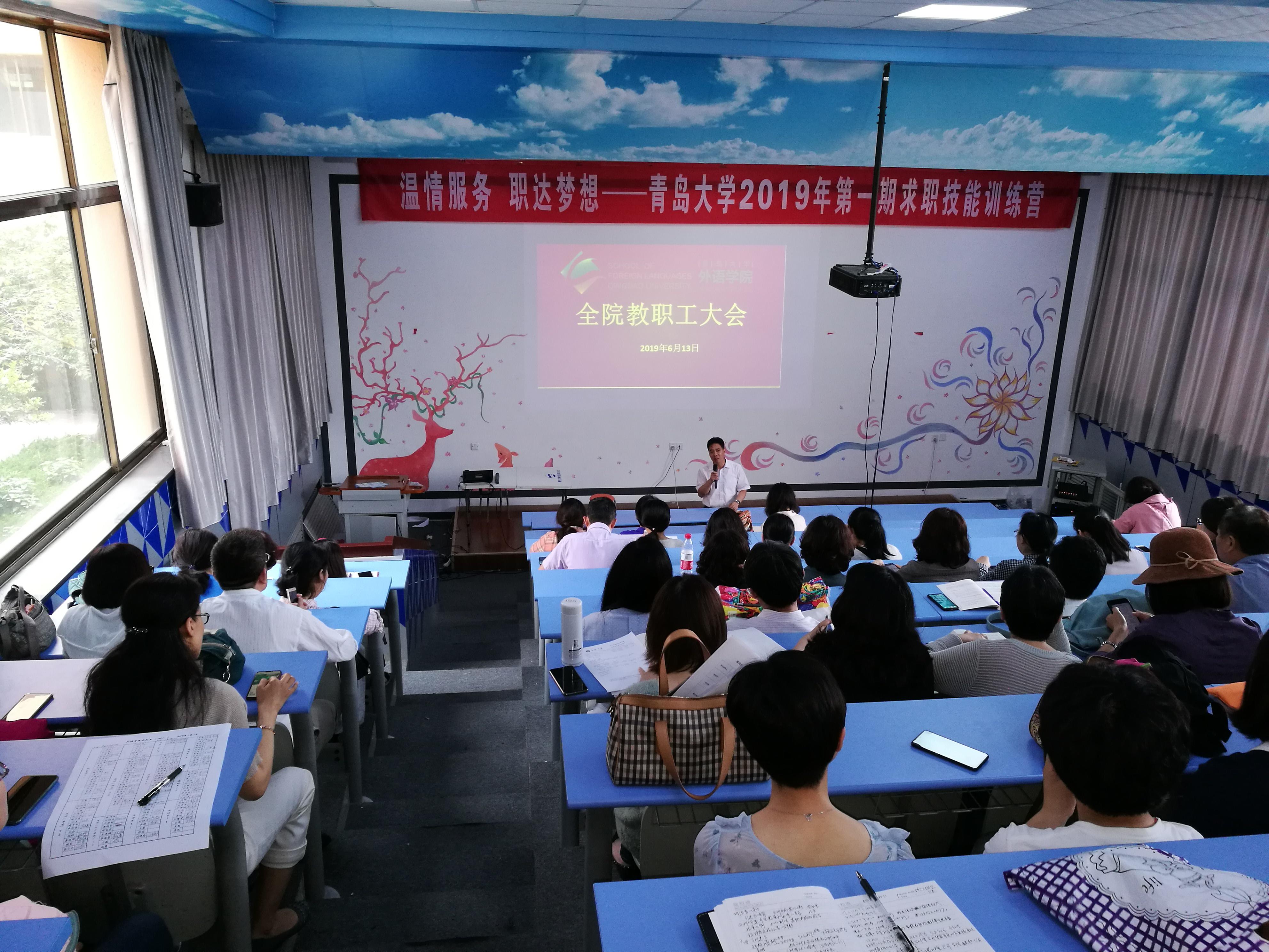 在博文楼218室召开期末教学工作会议。学院党委书记王传永主持会议,院党委副书记王海青、分管本科教学副院长娄永强分别在会上向全院老师传达了学校期末教学工作会议精神。