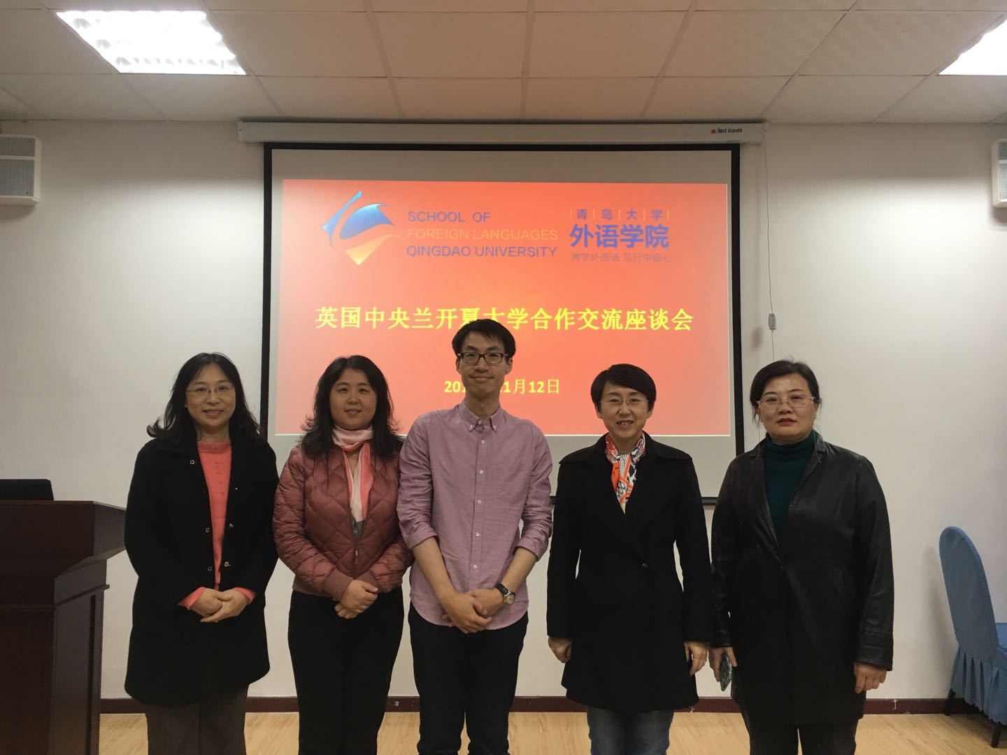 院长卞建华、副院长宫英瑞、英语系主任陈黎、英语教育系副主任王进福参加了座谈。